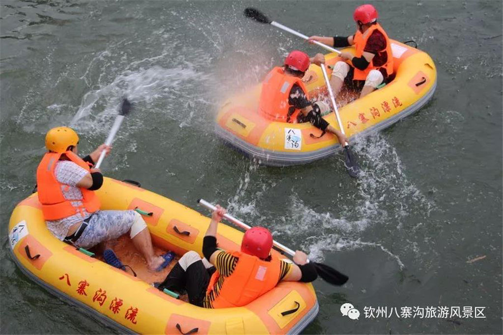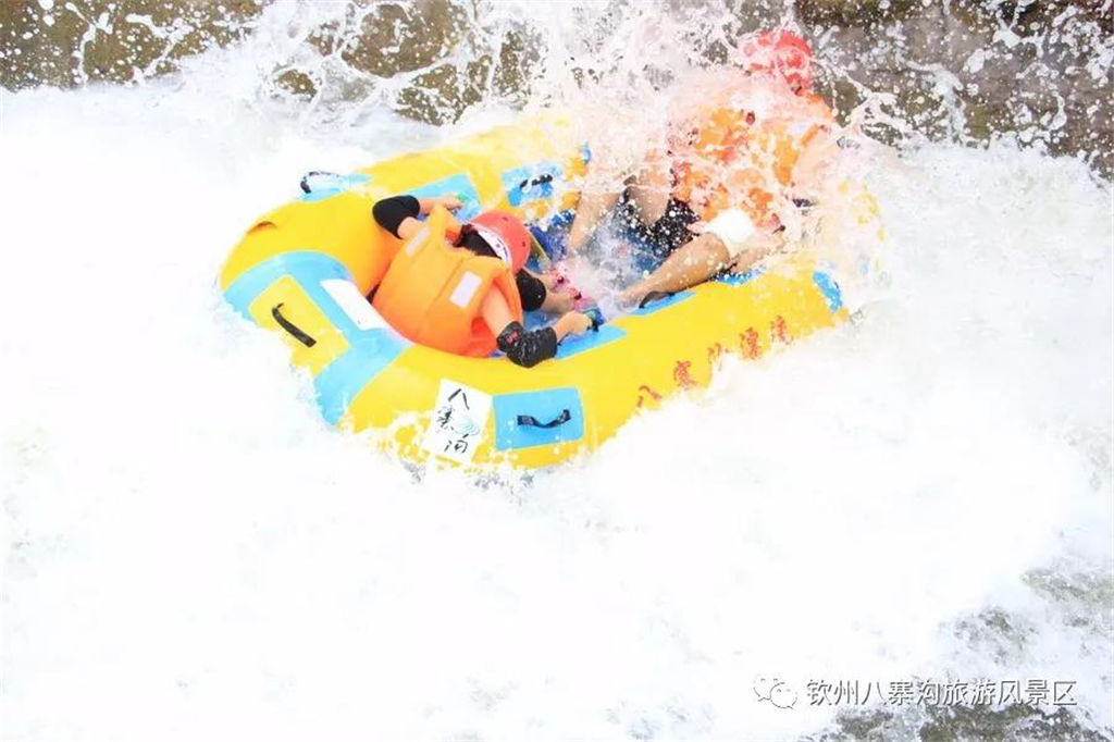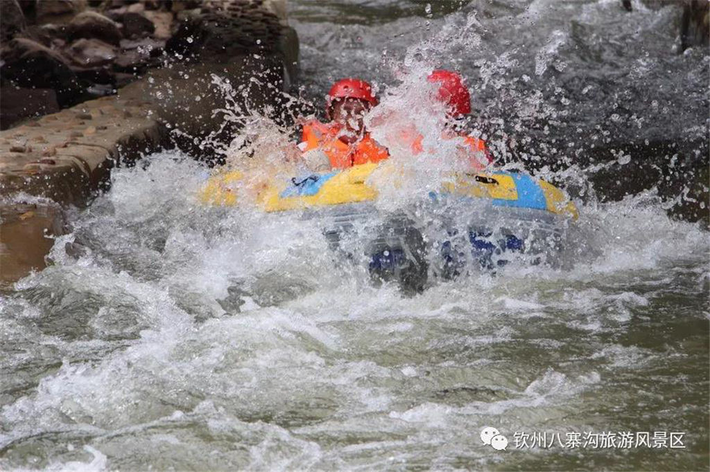 游人乘坐雙人橡皮艇,從清涼的水花中一躍而過(guò),時(shí)而輕盈如燕,時(shí)而奔騰如虎,一路漂蕩、一路歡叫。