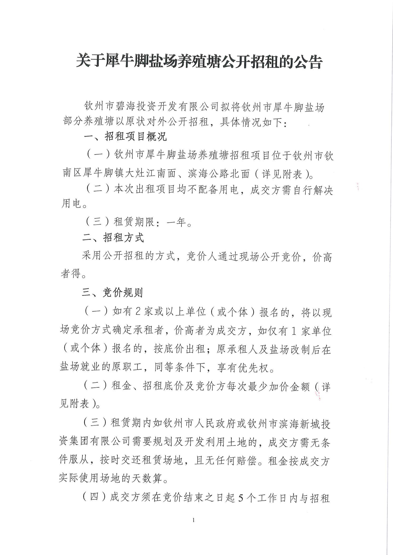 關(guān)于犀牛腳鹽場(chǎng)養(yǎng)殖塘公開(kāi)招租的公告