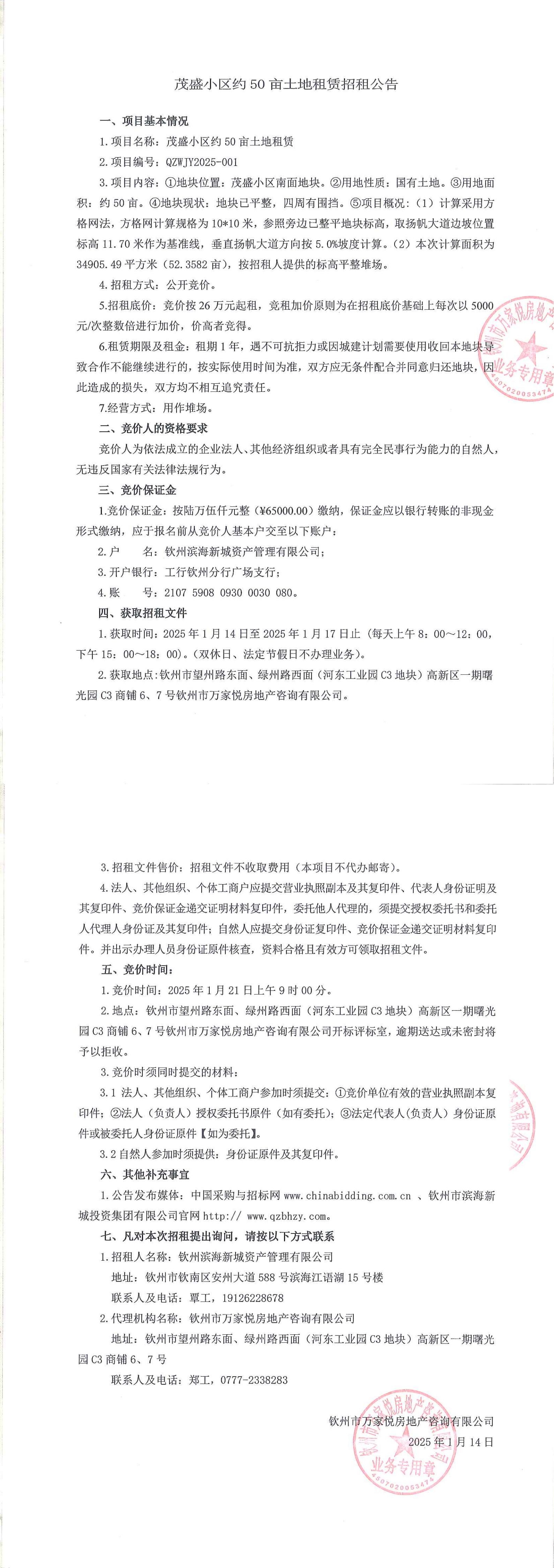 招租公告(欽州市七里香溪北面3畝土地)
