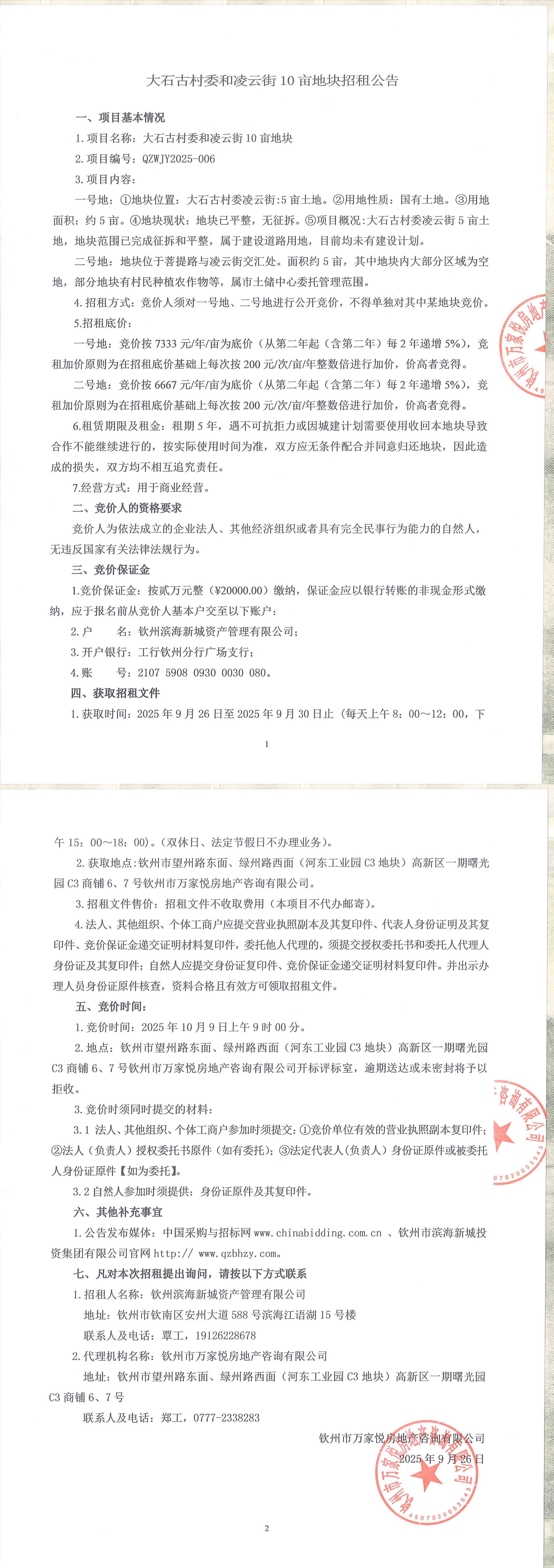 欽州市欽南區(qū)揚(yáng)帆大道與龍海路交匯處西北角地塊公開招租項(xiàng)目