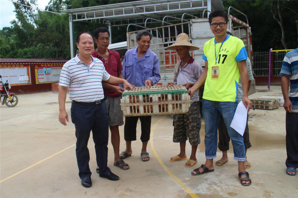 2018年7月18日,集團(tuán)公司副總經(jīng)理?xiàng)钚聴澛什糠指刹柯毠で巴潞檀?,為集團(tuán)公司精準(zhǔn)幫扶的貧困戶免費(fèi)送去375羽雞苗(價(jià)值約5000元),幫助貧困戶解決在產(chǎn)業(yè)發(fā)展過程中遇到的投入成本問題,為其增收致富創(chuàng)造有利條件。