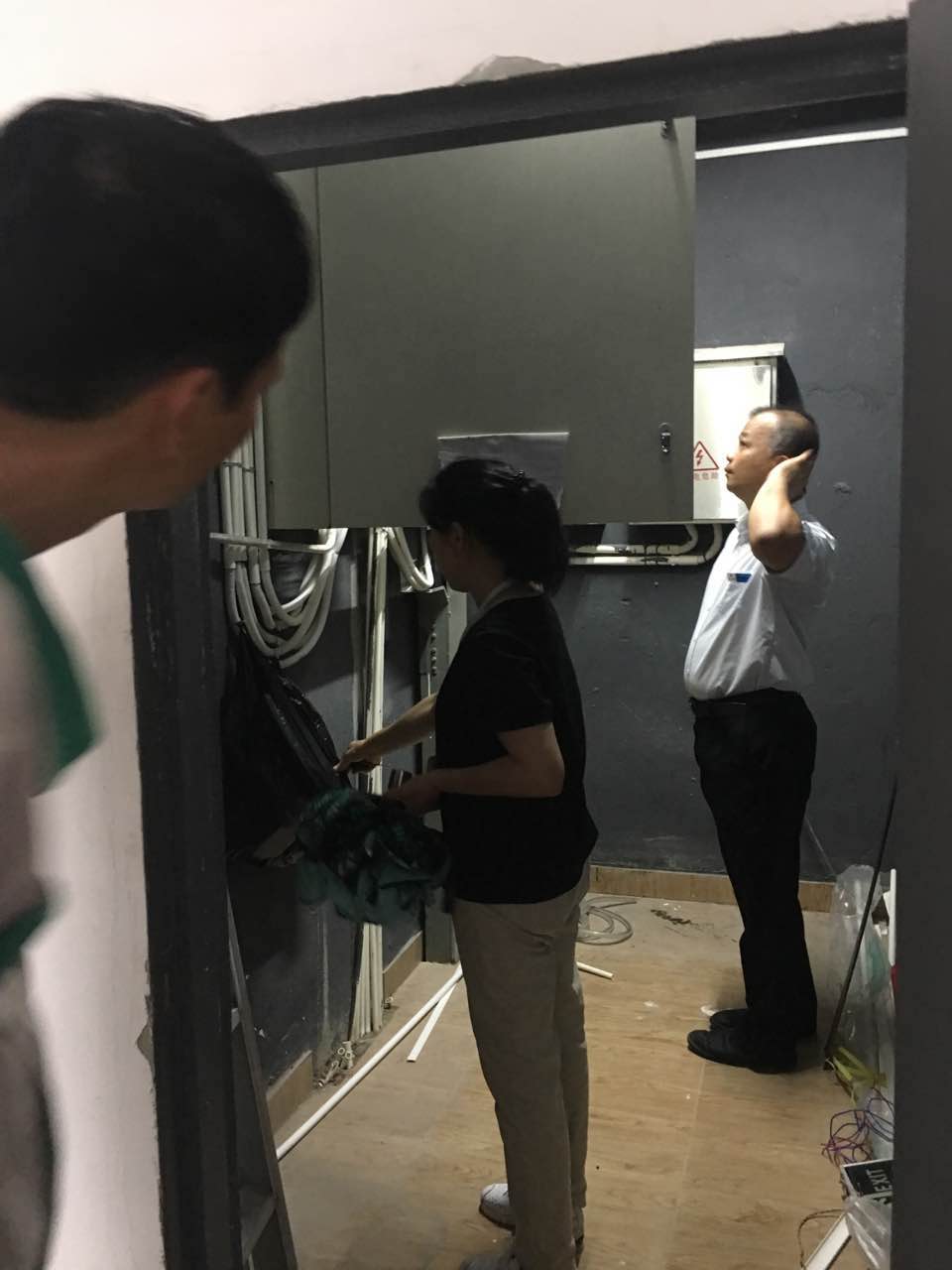 (圖為對商戶配電箱及消防施設(shè)設(shè)備的檢查)