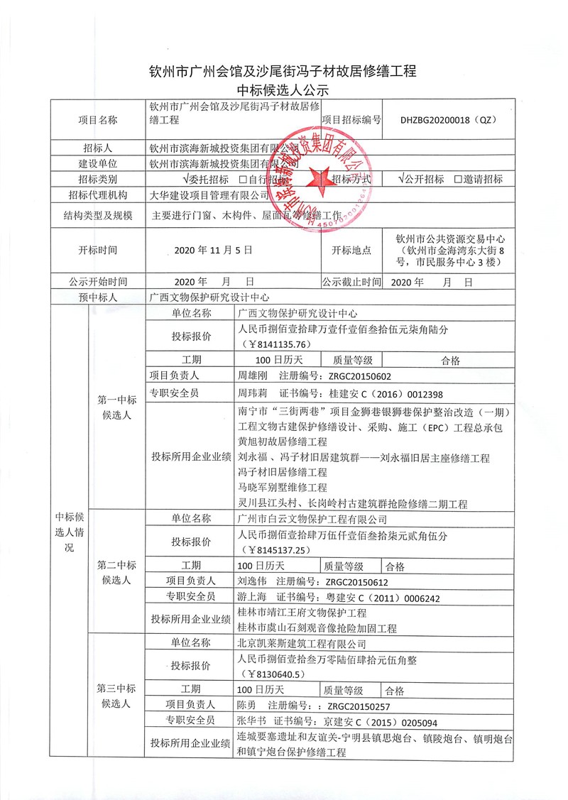 欽州市濱海新城嘉興街(嘉禾街-揚(yáng)帆大道)道路工程及嘉興街(揚(yáng)帆大道-安州大道)地下綜合管廊項(xiàng)目、欽州市公安局沙埠派出所項(xiàng)目、欽州市濱海新城安州大道中段與環(huán)城南路交叉路口工程綜合檢測(cè)中標(biāo)候選人公示 項(xiàng)目名稱 欽州市濱海新城嘉興街(嘉禾街-揚(yáng)帆大道)道路工程及嘉興街(揚(yáng)帆大道-安州大道)地下綜合管廊項(xiàng)目、欽州市公安局沙埠派出所項(xiàng)目、欽州市濱海新...
