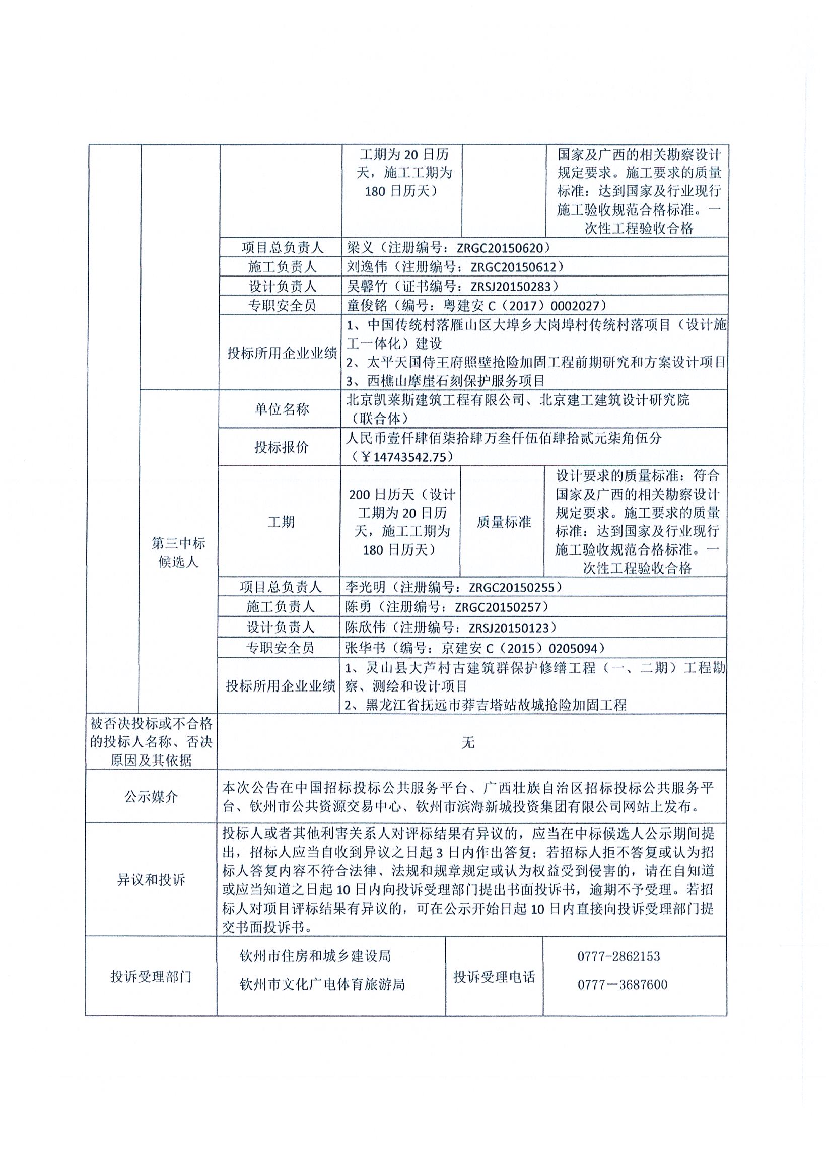 欽州市中山路、占鰲巷旅游開發(fā)項目(一期)蘇廷有、天后宮修繕項目工程設計-采購-施工(EPC)工程總承包中標候選人公示