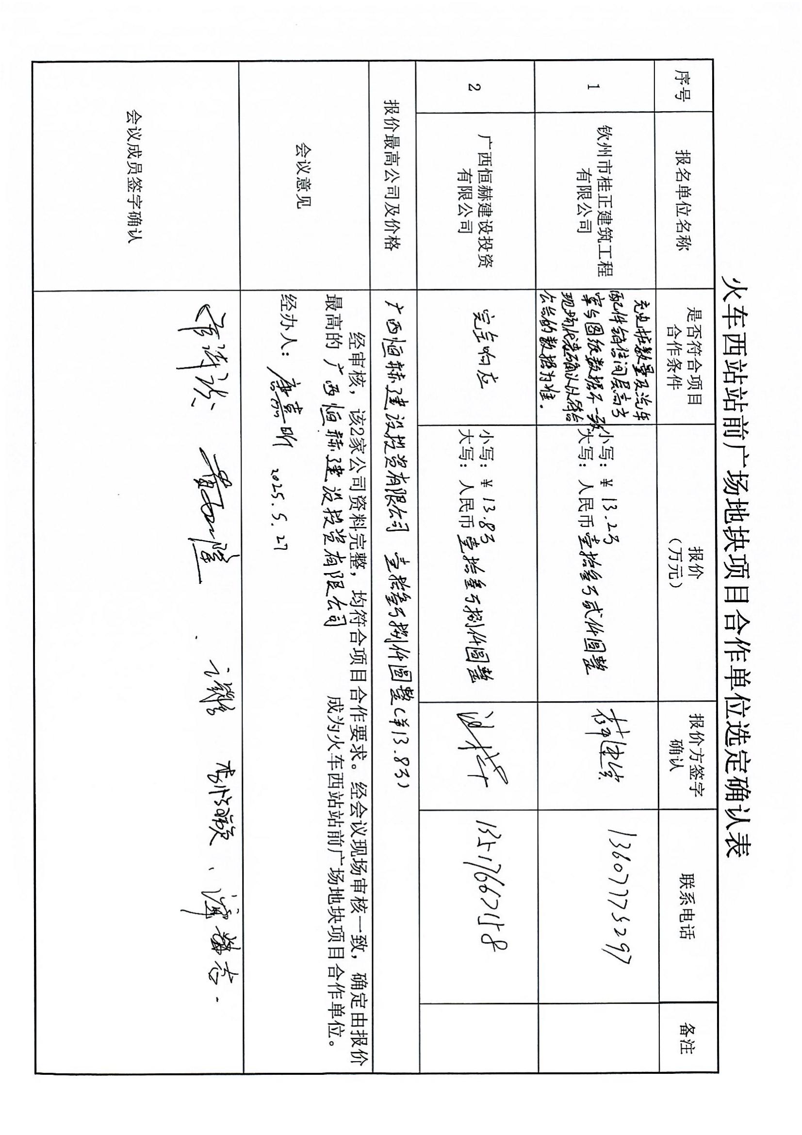 火車西站站前廣場地塊招租項目成交結(jié)果公告