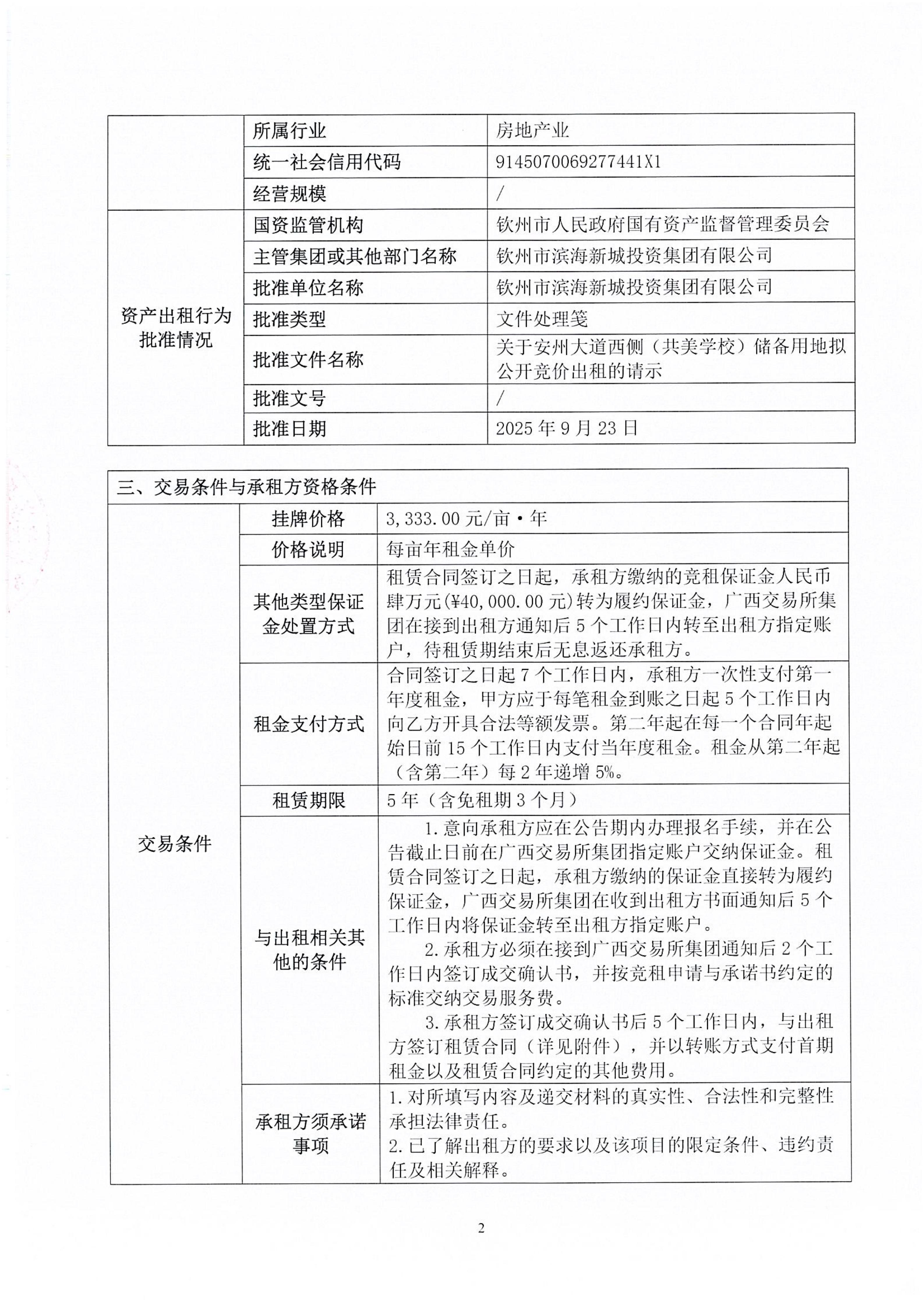 欽州市欽南區(qū)安州大道西側(cè)(共美學(xué)校)儲(chǔ)備用地公開(kāi)招租項(xiàng)目